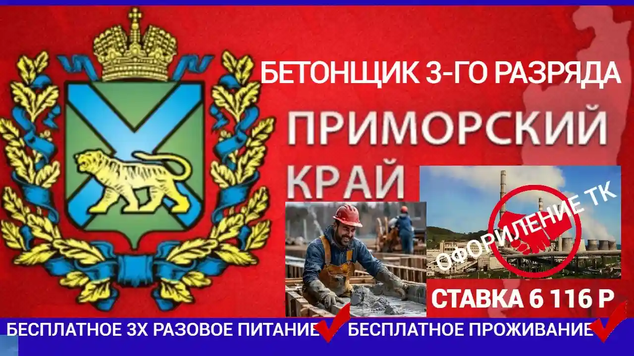 БЕТОНЩИК 3-ГО РАЗРЯДА👉СТАВКА 6116 РУБЛЕЙ 🏠И🍝💯