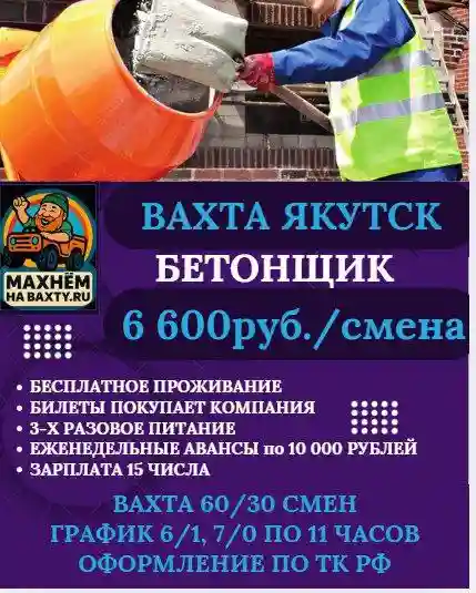 Paбoта BAХTОЙ ! Якутск 💶 6000 р за смену + проживание. ВAXTA – стандартно 60/30, другой график обсуждается. ⚠️ МЕСТА ОГРАНИЧЕНЫ! Мы прямой работодатель, предлагаем: Достойный заработок. 600 руб./час. 6600 руб./смена. 198 000 руб./месяц. 396 000 руб./месяц Полностью белая ЗП; Официальное оформление; Бесплатная спецодежда; Бесплатное проживание в хостеле; Питание 3-х разовое в столовой. Авансы еженедельно по 10 000 рублей. Заселение в день приезда. В общежитии есть вся бытовая техника. Требования: - Подтвержденный опыт работы от 1 года или корочка (удостоверение); - Желание работать! ❗Оставьте отклик, и наш менеджер ответит на все ваши вопросы. Пришлем вам фотографии с условиями проживания. 📞☎️ Звоните и записывайтесь на собеседование! Также готовы рассмотреть на данную вакансию людей с запросами: работа монтаж