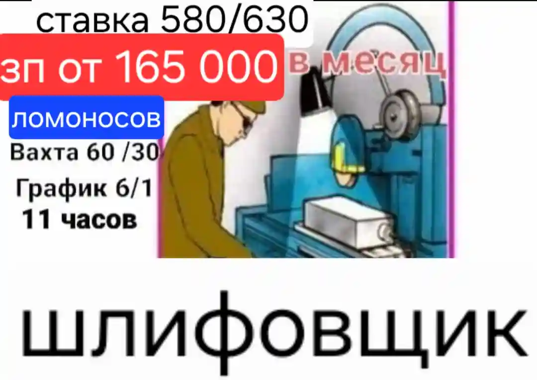ШЛИФОВЩИК, з/п от 165 000 руб/ мес ( ставки 580/630 день/ночь)