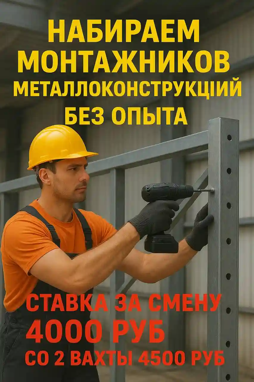 - Монтаж металлических конструкций опыт не требуется