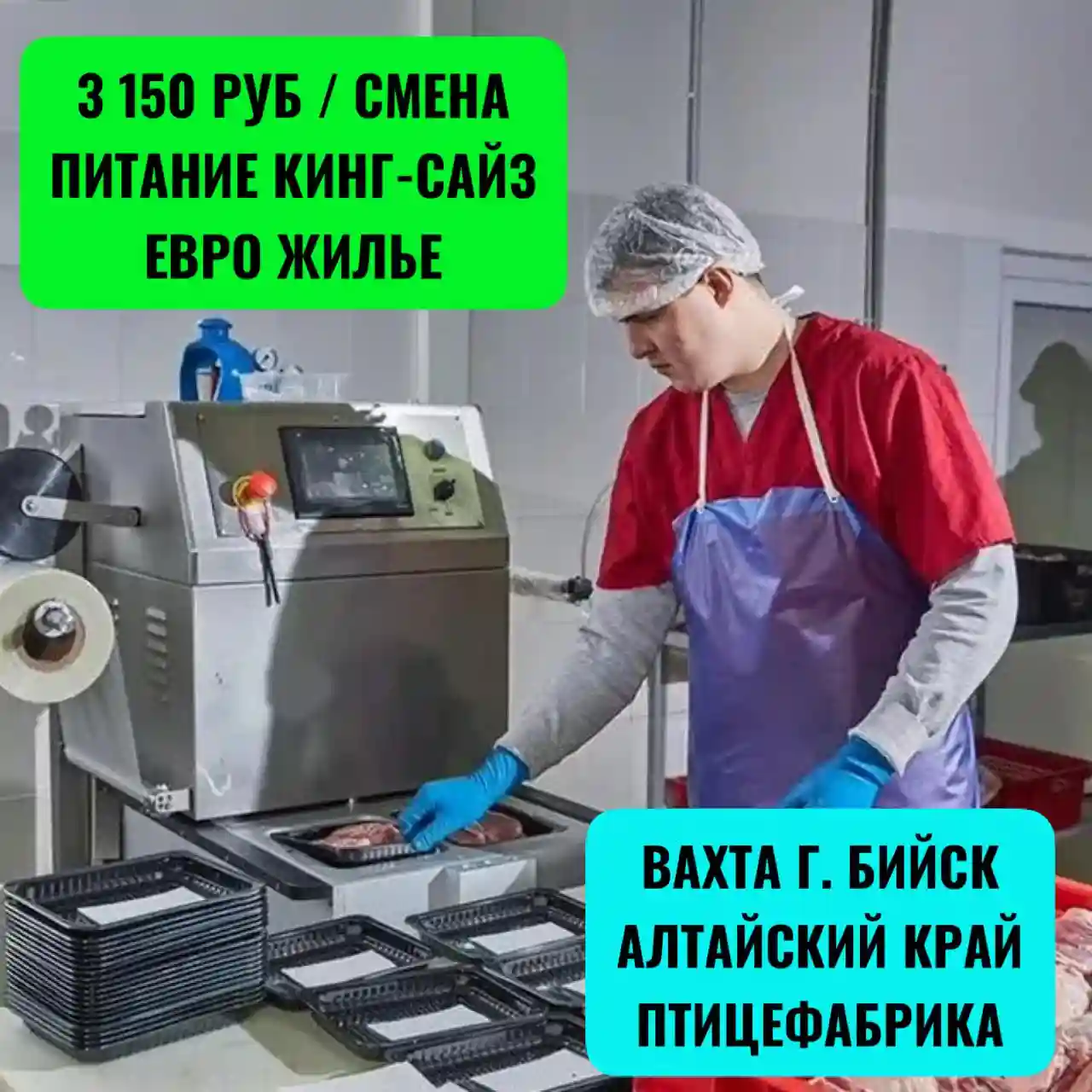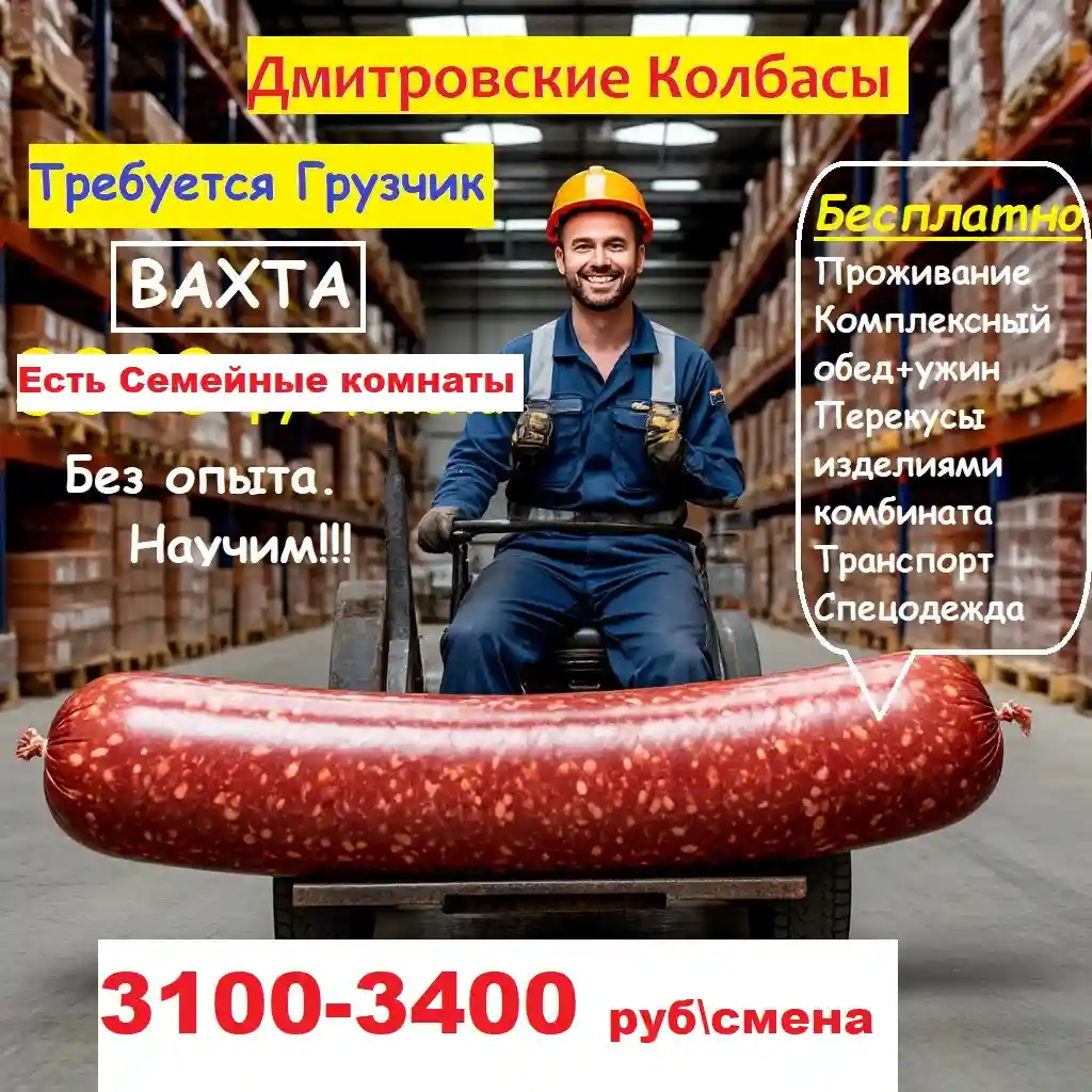 Обязанности: навеска колбасной продукции, упаковка колбасных изделий на конвейере, погрузочные работы, мойка производственных помещений.