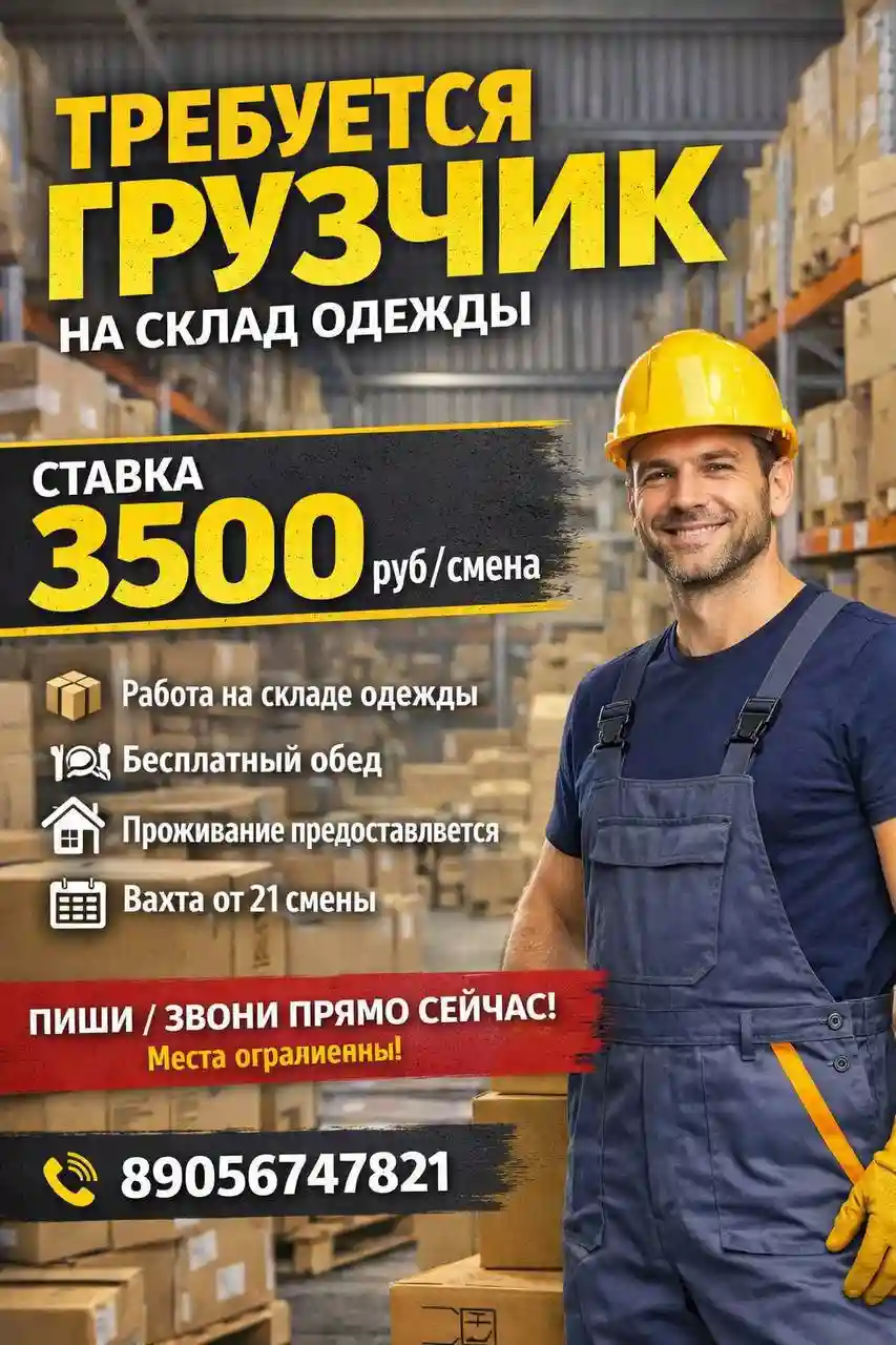 Грузчик склад одежды вахта от 20 смен