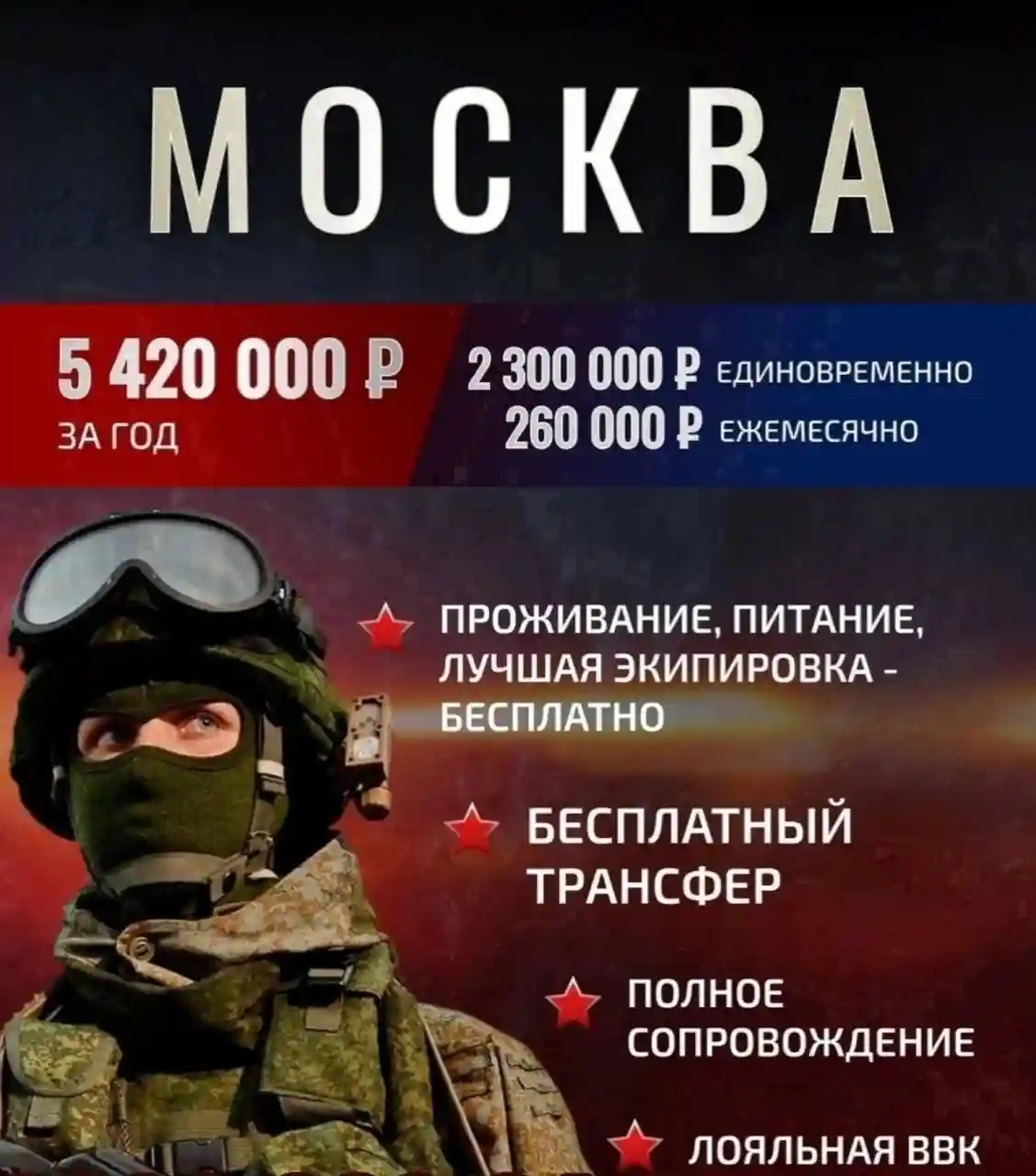 При заключении контракта в Москве кандидату выплачивается 2.3 млн подъёмные.