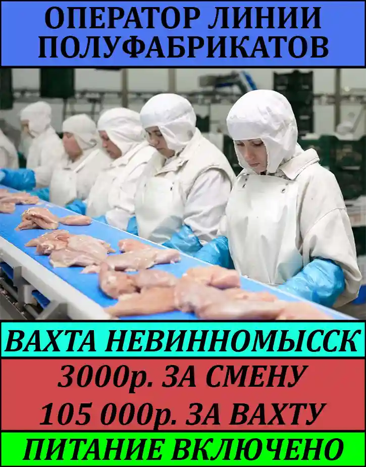 Упаковщица на полуфабрикаты из индейки.вахта