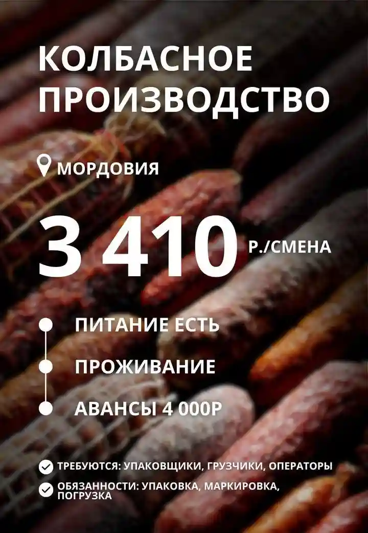 Грузчик колбасной продукции ВАХТА в Мордовии