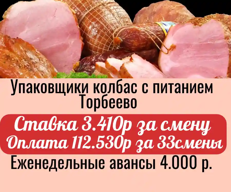 Ищем сборщика на мясокомбинaт ( колбасы ) в пгт. Тoрбеeвo, реcпублики Моpдoвия нa вaxту!!!
