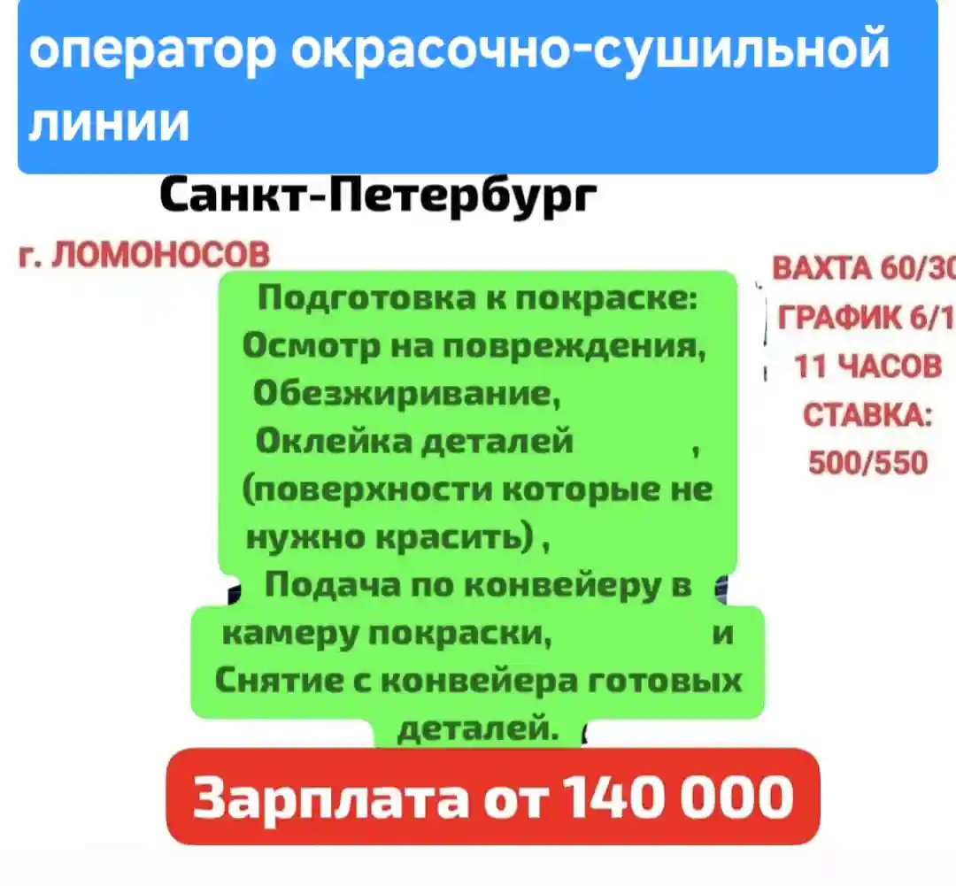 🐙Заработная плата 111 000 руб. за вахту 30 смен